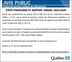 Avis public : adoption du budget d’investissement et de fonctionnement