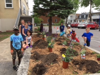 Nous sommes très fiers de notre travail ! Nous avons reçu de nombreuses félicitations du personnel de l’école ! Nous avons hâte de voir si nos plantes vont attirer les abeilles !